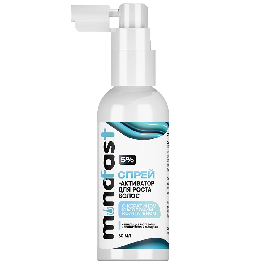 Спрей-активатор для роста волос с кератином и морским коллагеном Minofast 5%.