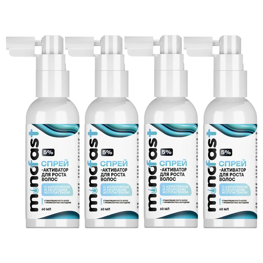 Спрей-активатор для роста волос с кератином и морским коллагеном Minofast 5%.
