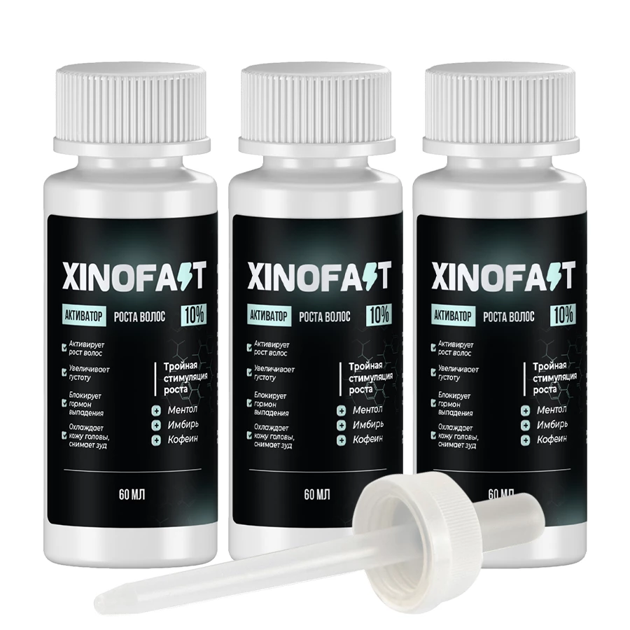 3 флакона лосьона для роста волос Xinofast 10% с пипеткой, 60 мл