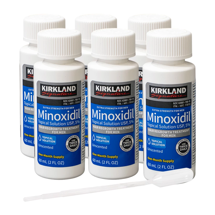 Что в комплекте: 6 флаконов миноксидила 5%, неоригинальная пипетка для нанесения.
