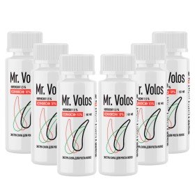 Что в комплекте: 6 флаконов лосьона для роста волос Mr. Volos 10%, 60 мл. 6 оригинальных пипеток для нанесения объемом 1 мл.
