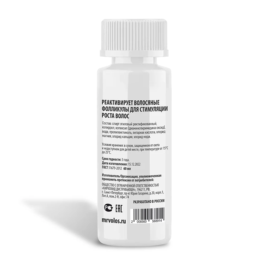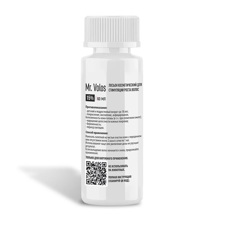 - 1 флакон лосьона для роста волос Mr. Volos 15%, 60 мл