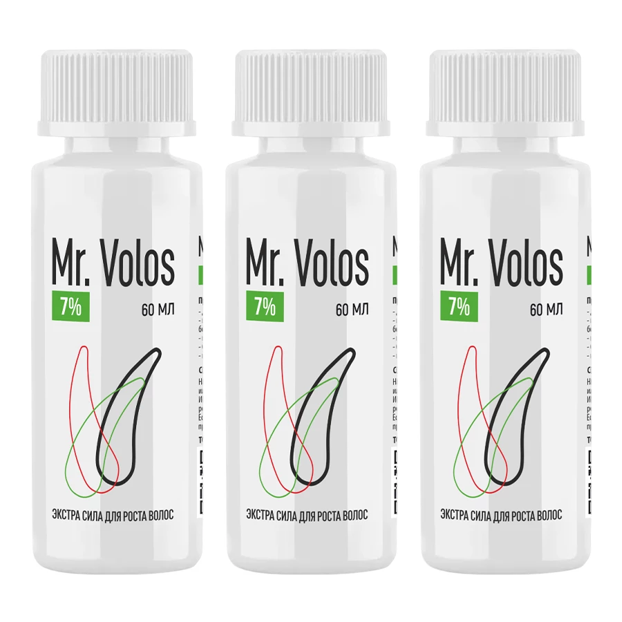 Что в комплекте: 3 флакона лосьона для роста волос Mr. Volos 7%, 60 мл. 3 оригинальные пипетки для нанесения объемом 1 мл.