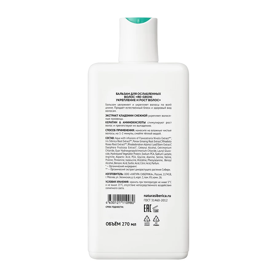 Состав: Aqua with infusions of Flavocetraria Nivalis ExtractWH, Iris Sibirica Root ExtractWH, Panax Ginseng Root Extract, Rhodiola Rosea Root ExtractWH, Rhododendron Adamsii Leaf/Stem Extract, Dasiphora Fruticosa Extract; Cetearyl Alcohol, Cetrimonium Chloride, Guar Hydroxypropyltrimonium Chloride, Lauryl Glucoside, Hydrolyzed Keratin, Sodium PCA, Sodium Lactate, Arginine, Aspartic Acid, PCA, Glycine, Alanine, Serine, Valine, Proline, Threonine, Isoleucine, Histidine, Phenylalanine, Benzyl Alcohol, Benzoic Acid, Sorbic Acid, Citric Acid, Parfum.
