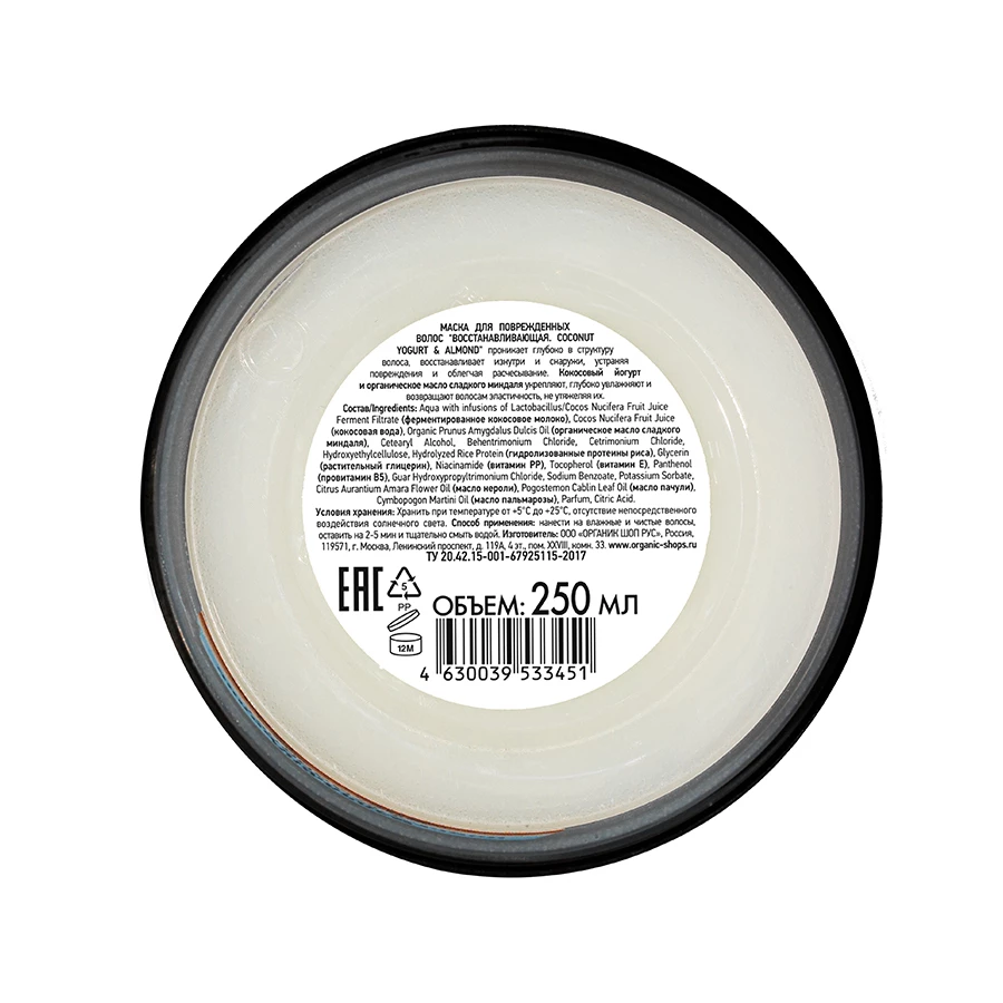 Маска с кокосовым йогуртом глубоко проникает в структуру волос, восстанавливая их изнутри и снаружи.