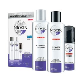 Придание волосам заметной гладкости и визуальной густоты при помощи инновационной 3-ступенчатой системы System 6 Nioxin для химически обработанных и истонченных волос. Данная система включает в себя три продукта, которые волосам визуальный объем, а также очищают, питают и нормализуют состояние волос и кожи головы. Система для ухода за волосами System 6 Nioxin с технологией SmoothPlex укрепляет волосы, предотвращает их выпадение или повреждение кутикулы, а также смягчает их, придает им густой вид и сохраняет цвет. Данная 3-ступенчатая система полноценного увлажнения защищает и восстанавливает кожу головы. Очищающий шампунь Nioxin Cleanser 6 (300 мл): удаляет себум и другие загрязнения с кожи головы и волос. Увлажняющий кондиционер для кожи головы Nioxin Conditioner 6 (300 мл): легкий кондиционер восстанавливает упругость волос и регулирует водный баланс. Питательная маска Nioxin Scalp & Hair 6 (100 мл): восстанавливает кожу головы.