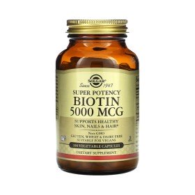 Биотин для волос - также известный как витамин H или B7. Помогает волосам расти быстрее. Укрепляет их и делает здоровыми.