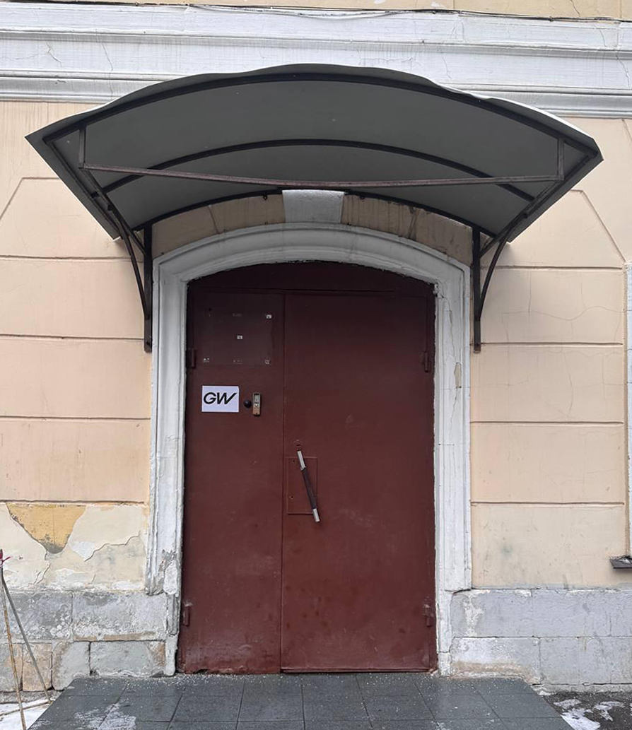 3. Переходите на другую сторону и заходите в дверь с козырьком (на двери будет наклейка GW - далее нажимаете на звонок, охранник откроет Вам дверь. Заходите внутрь и звоните нам по телефону +7 (495) 023-37-33 — мы сразу же спустимся и выдадим Ваш заказ)